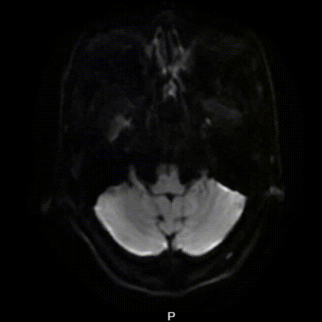 头部MRI+DWI提示:左侧大脑半球多发脑梗死,DWI像与T2 FLAIR像不匹配。