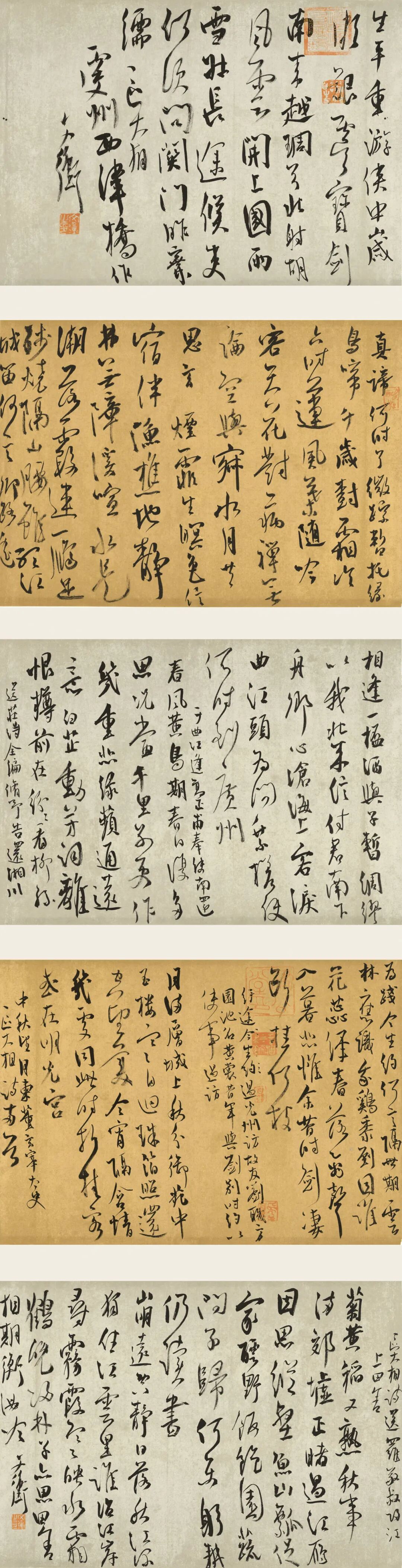 创作感想:此作内容是佛山高明明代著名诗人区大相诗歌,合计八首。我常有择抄区氏诗歌的习惯,此次在众多习作中选取五张,间色分列,合成一条幅,每张的布局也是自然抄录成体。