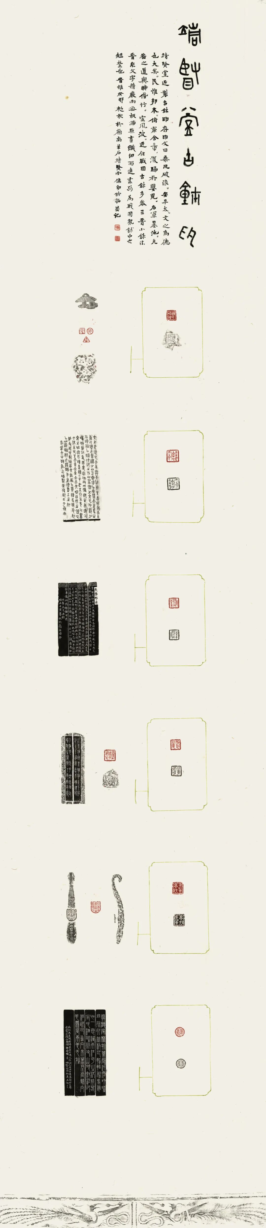边款的创作于我而言是另一重艺术实验。我特意采用整纸拓印技法,使封泥质感的沧桑感与金文题签的形成书印的统一,再以精谨小楷跋文贯穿其间,既是对古法的致敬,亦是个性化表达的尝试。