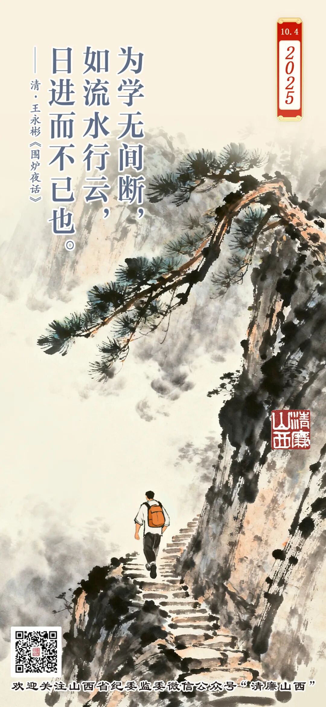 这句话出自清代学者王永彬的《围炉夜话》。大意为,做学问一定不可间断,要像不息的流水和飘浮的行云,永远不停地前进。该句以“流水行云”为喻,强调求学治学需保持持续不间断的状态,避免中途停滞,主张通过日积月累实现自我提升。