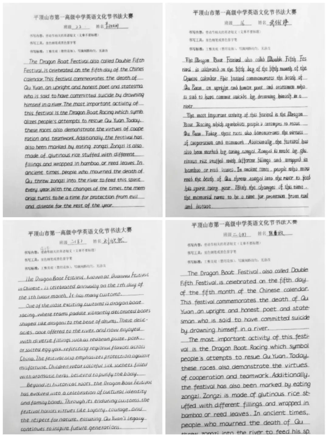 通过此次英语文化节书法大赛,市一高英语教研室不仅为同学们提供了展示才华的舞台,更是一次文化传承与语言学习的深度融合。同学们进一步增长了知识,同时也提升了英语表达能力。此次英语书写大赛是我校英语教研室学科建设的生动实践,未来,英语教研室将持续依托市一级基地优势,发挥辐射引领作用,助力特色办学再上新台阶。