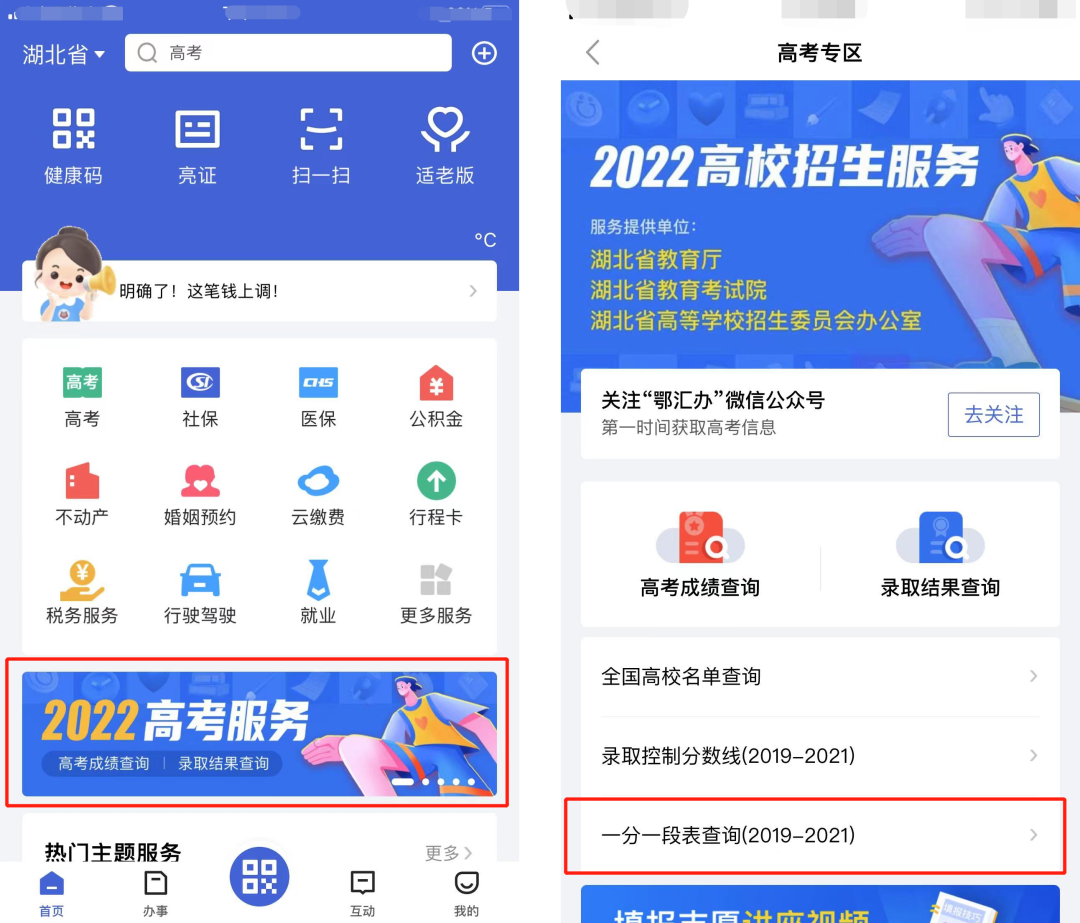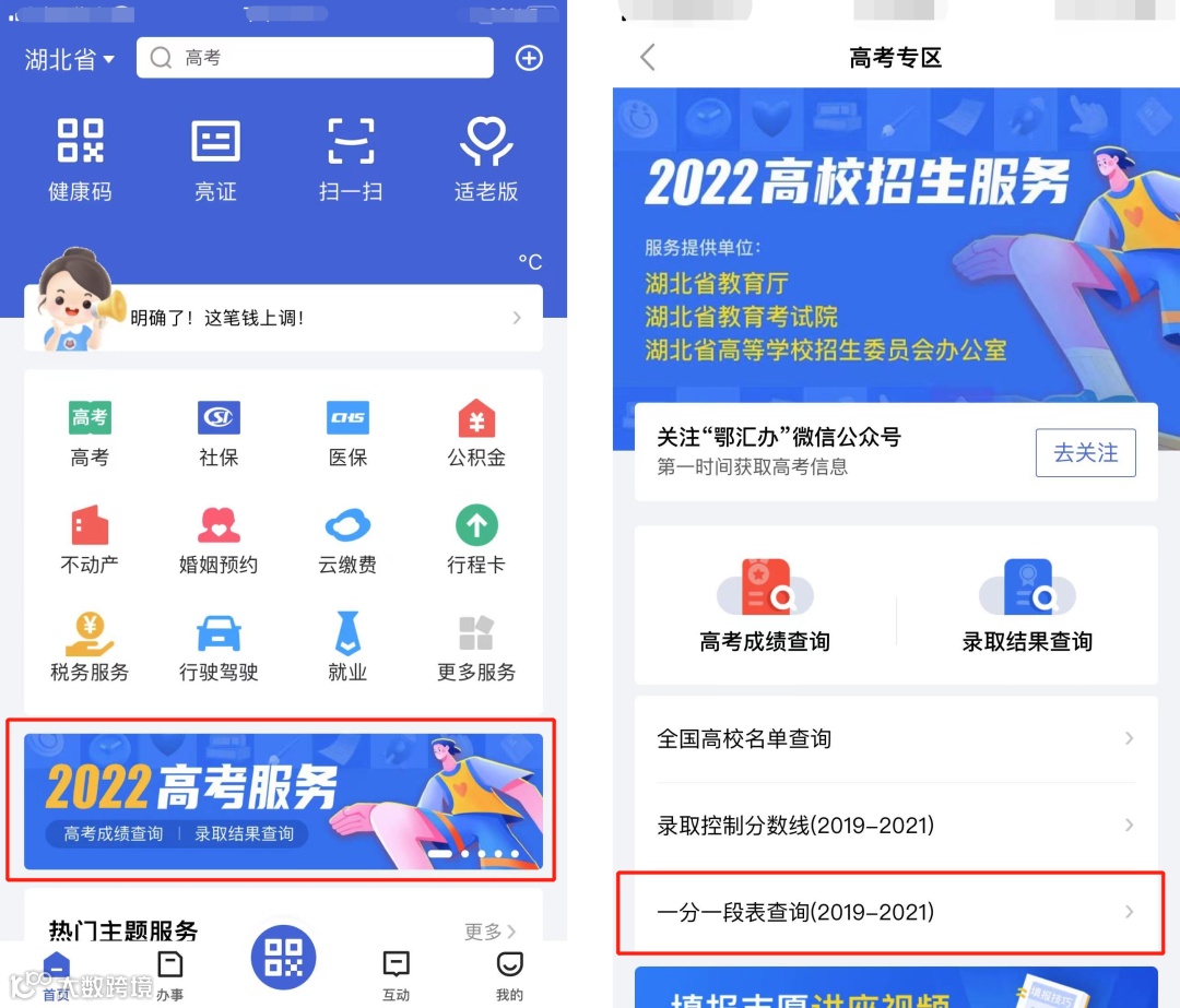 01.下载并登录鄂汇办APP,点击进入“高考专区”,选择“一分一段查询”服务。