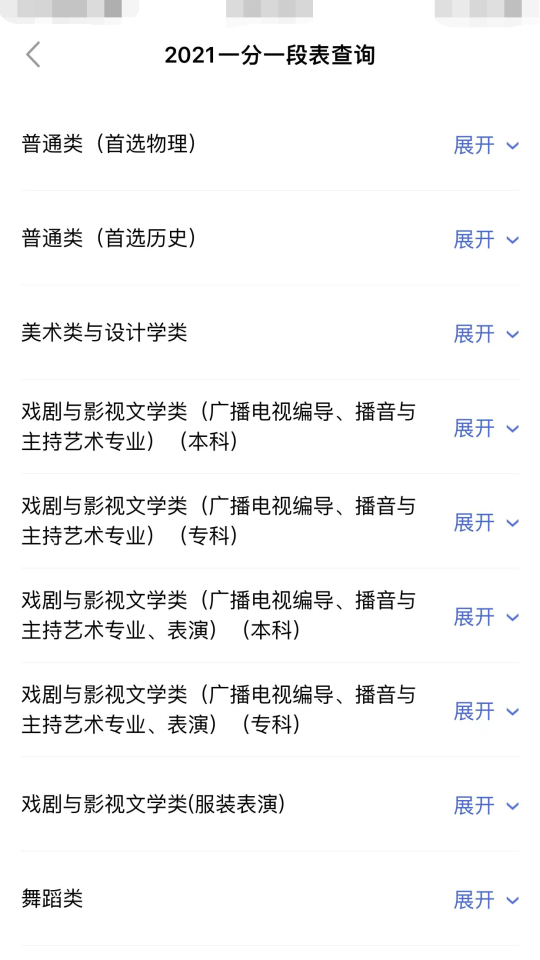 02.根据考生的需要选择即可查询对应类的一分一段表。
