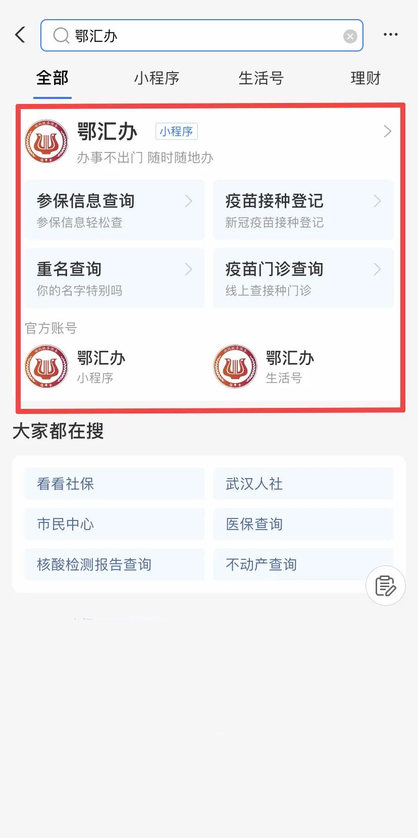 在支付宝搜索“鄂汇办”,进入鄂汇办支付宝小程序。