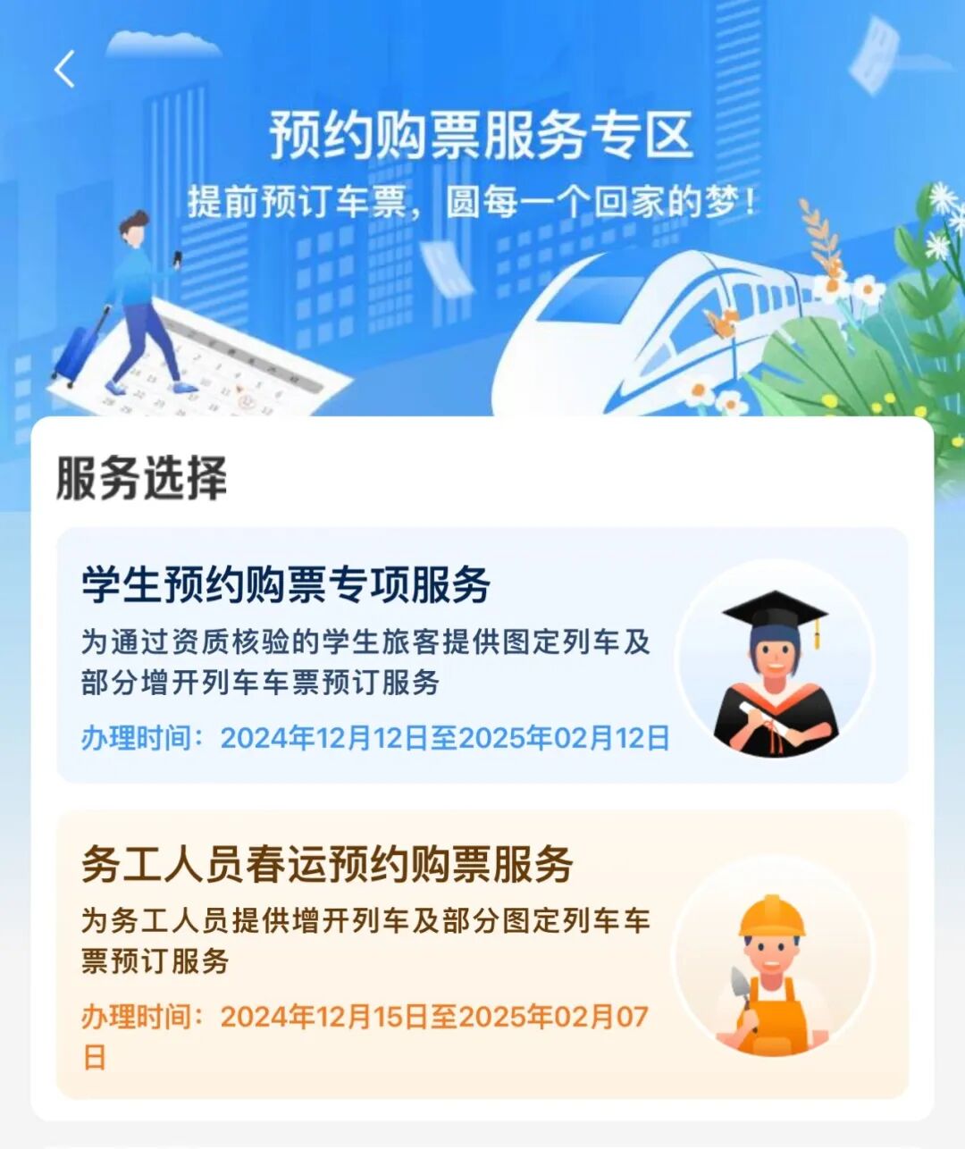 近年来,学生旅客与父母家庭异地团聚的情况逐渐增多,为更好地满足学生旅客多样化出行需求,铁路部门对2025年寒假期间(1月1日至3月31日)的学生优惠票发售和查验规则进行优化调整。符合条件的学生旅客(同前)可根据与家人团聚的实际地点,在铁路12306系统中灵活设置学生票优惠区间,并购买相应的学生优惠票,乘车途中工作人员仅核验铁路12306系统学生优惠资质信息中的学校所在地与学生证中的学校所在地是否一致。