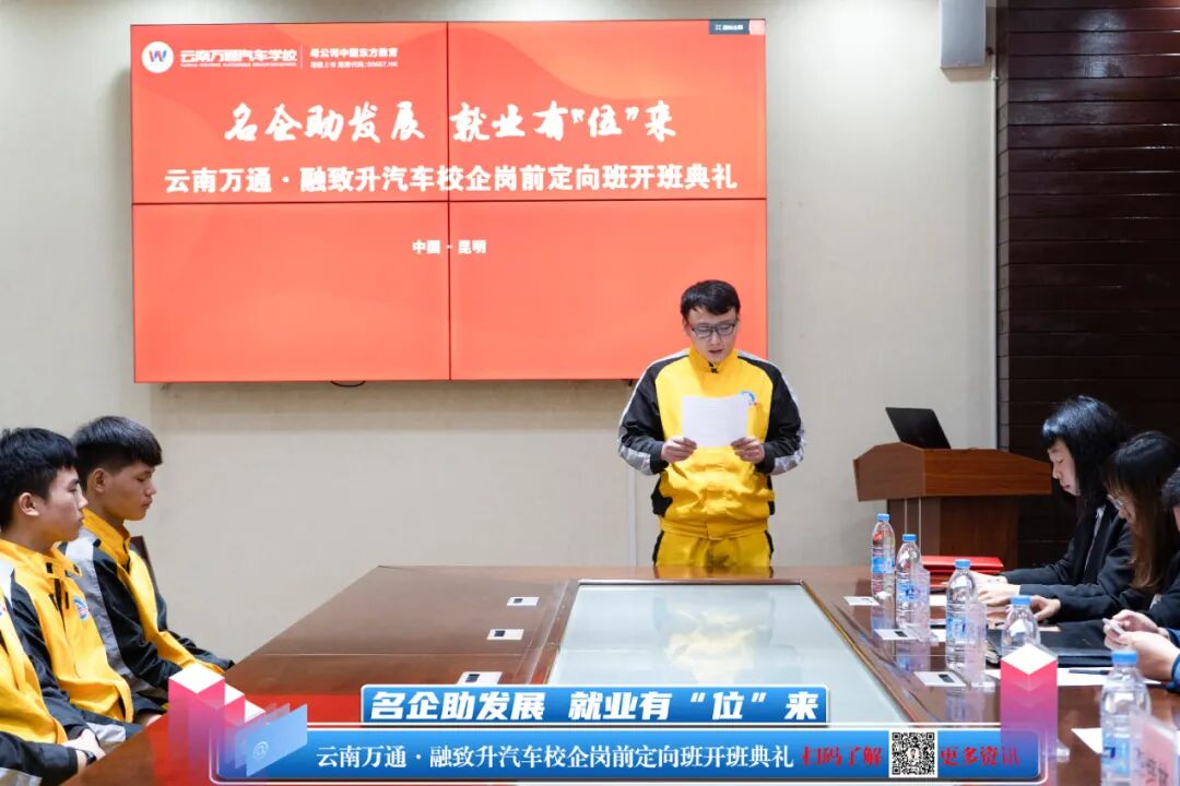 为推进2020届毕业生就业推荐与企业人才战略培养,增进学校与企业的合作与交流,为企业提供良好的人力资源服务,完善学校就业保障工作。9月24日,融致升汽车2020年校企定向就业实训班开班典礼在云南万通学校圆满举行。