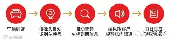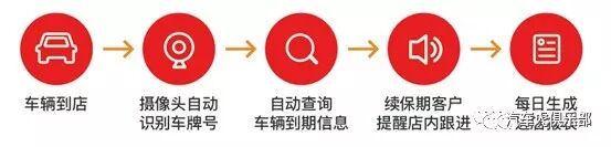 车辆进店,摄像头自动扫描车牌,自动进行续保查询,续保期内客户弹窗提醒业务员及时跟进,快速提升续保率。