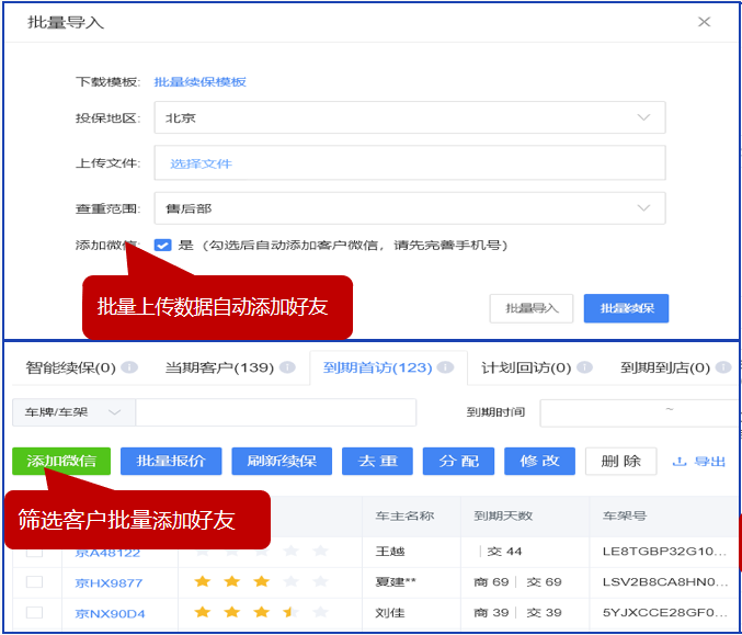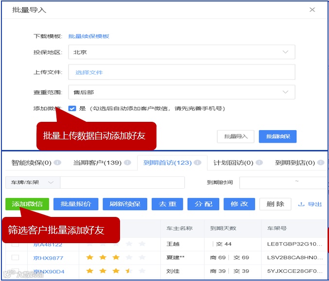 ① 能够识别所有车辆的保险到期信息(续保车、次新车、过户车)。