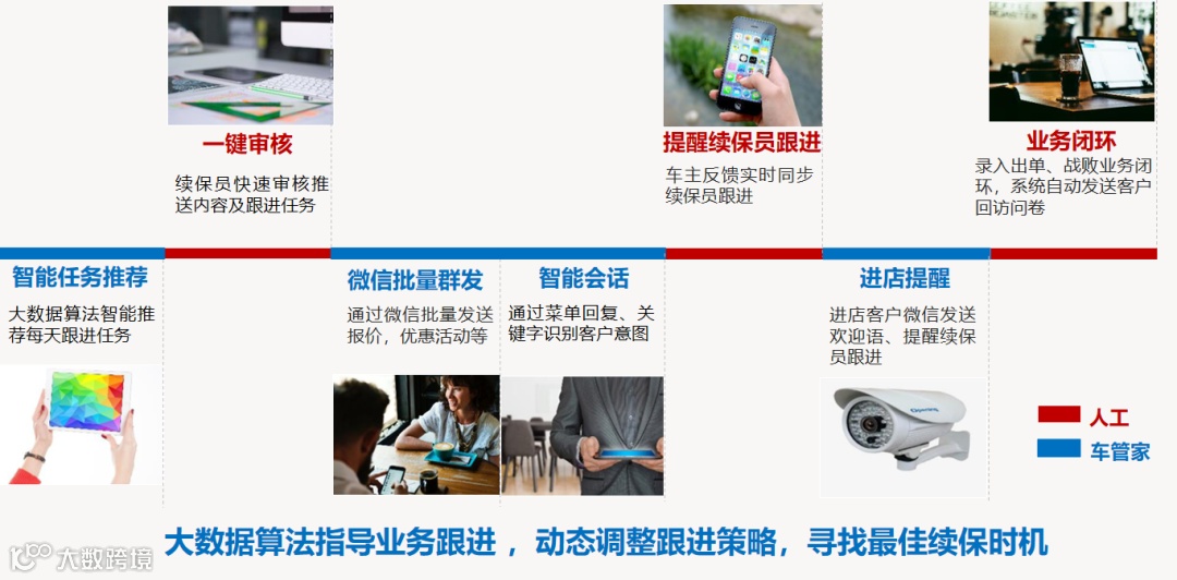 人机协同降本增效,根据大数据分析车主画像和历年投保习惯,推送不同内容,捕捉最佳成交周期。