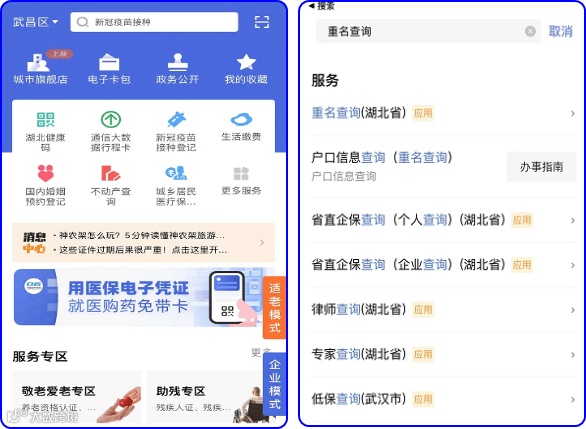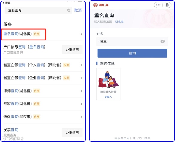 2.点击服务,输入需要查询的姓名,点击查询即可。