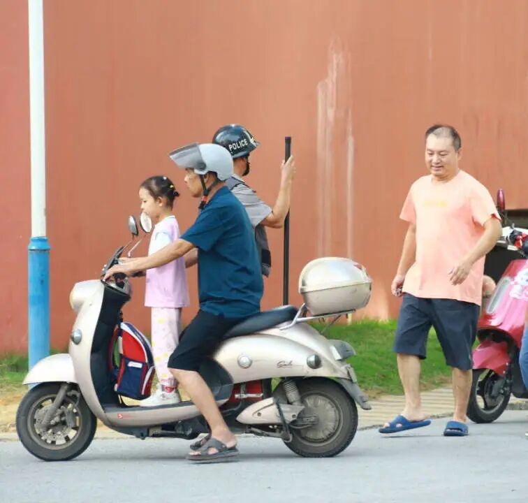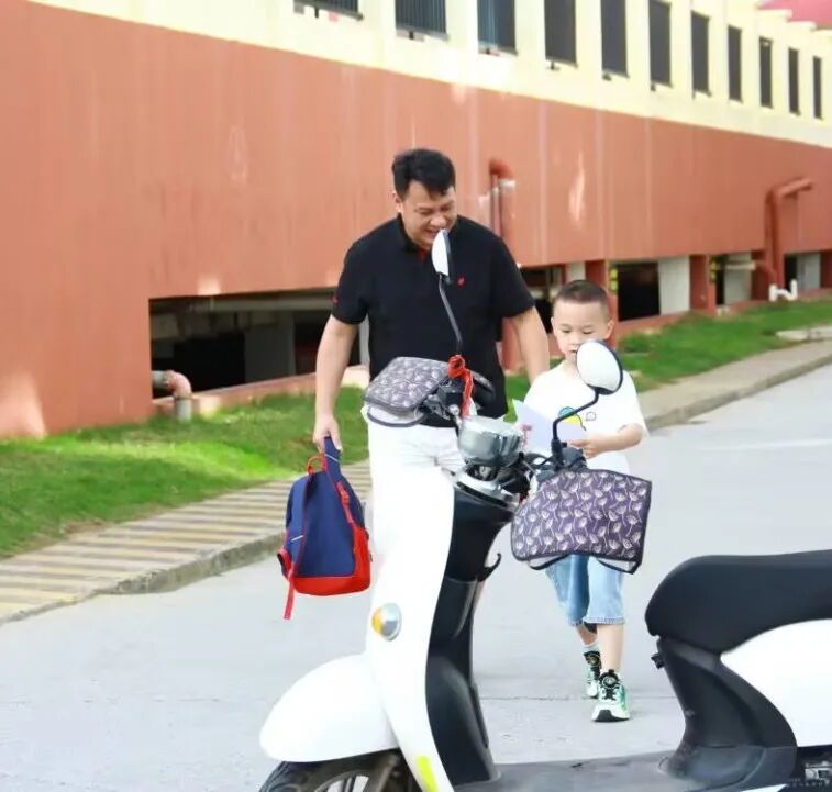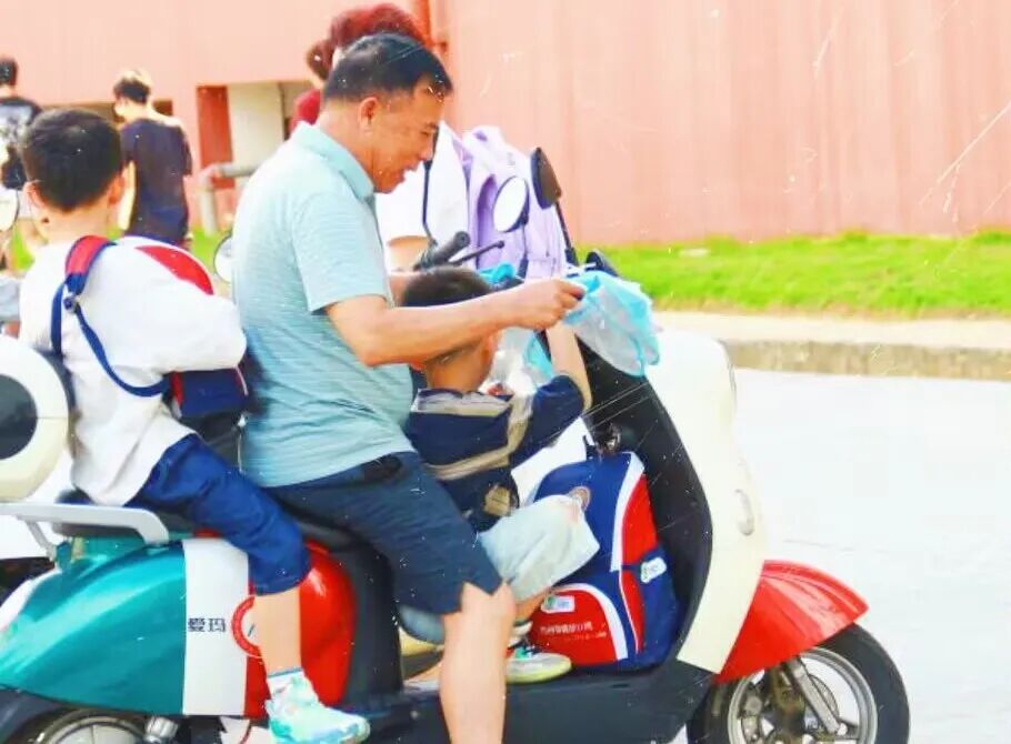 校园门口,是父爱的具象化展台。你看,骑着电动车的父亲,载着孩子,车筐里或许还装着给孩子准备的小惊喜;牵手同行的父子,大手拉小手,每一步都踩出稳稳的安全感。这些身影,没有惊天动地的誓言,却用日复一日的接送,把 “父爱如山” 翻译成最日常的陪伴 。