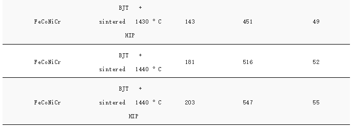 L.Chen等人探讨了烧结温度和热等静压(HIP)对通过BJT制备的等原子FeNiCoCr HEA样品的微观结构、力学性能和电化学行为的影响。烧结样品显示出单一的FCC相,相对密度随着烧结温度的升高而增加。HIP显著提高了样品的密度和机械性能。钝化膜中Co(Fe,Cr)2O4的形成有助于提高FeCoNiCr的耐腐蚀性。