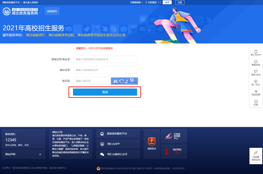 二、点击进入【高考成绩查询】,填写相关信息,即可查询