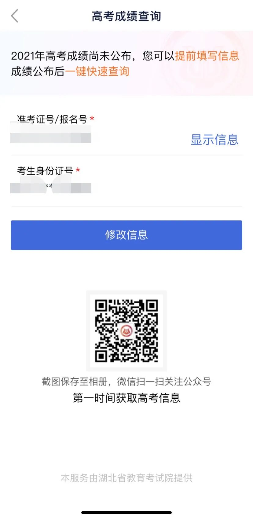 第三步:点击进入【高考成绩查询】服务,预填相关信息