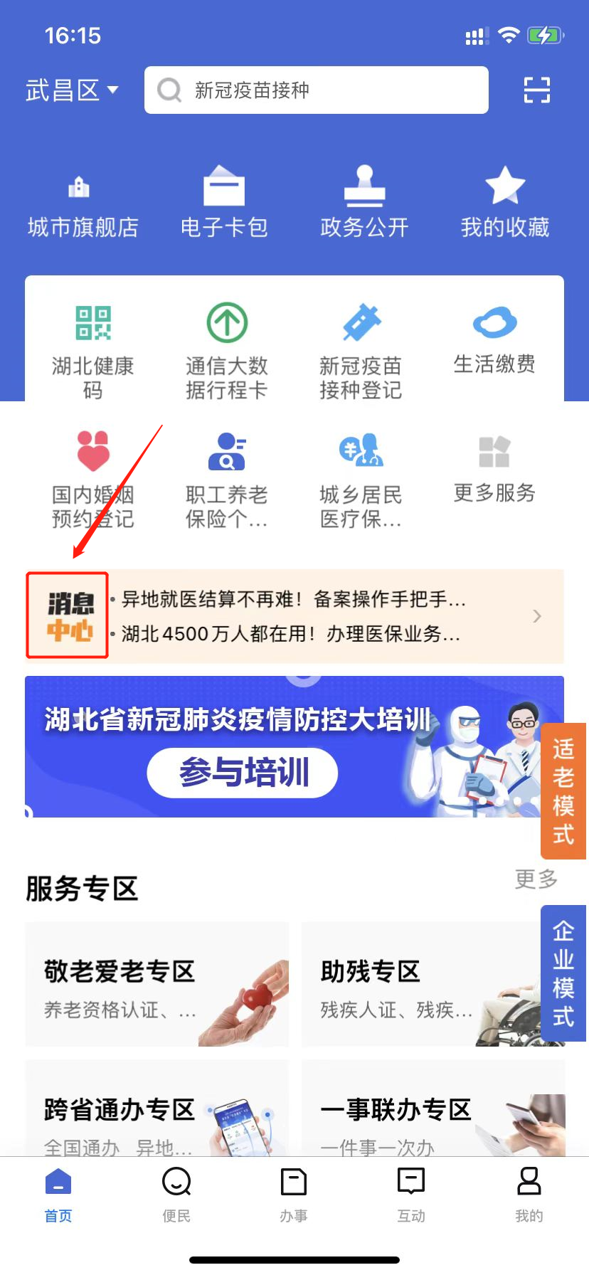 1.进入“鄂汇办”App,点击消息中心图标即可进入消息列表,点击系统消息即可查看提醒内容。