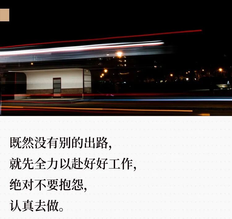 既然没有别的出路,他就决定先好好工作,全力以赴,并且给自己定了一个要求:绝对不要抱怨,认真去做。