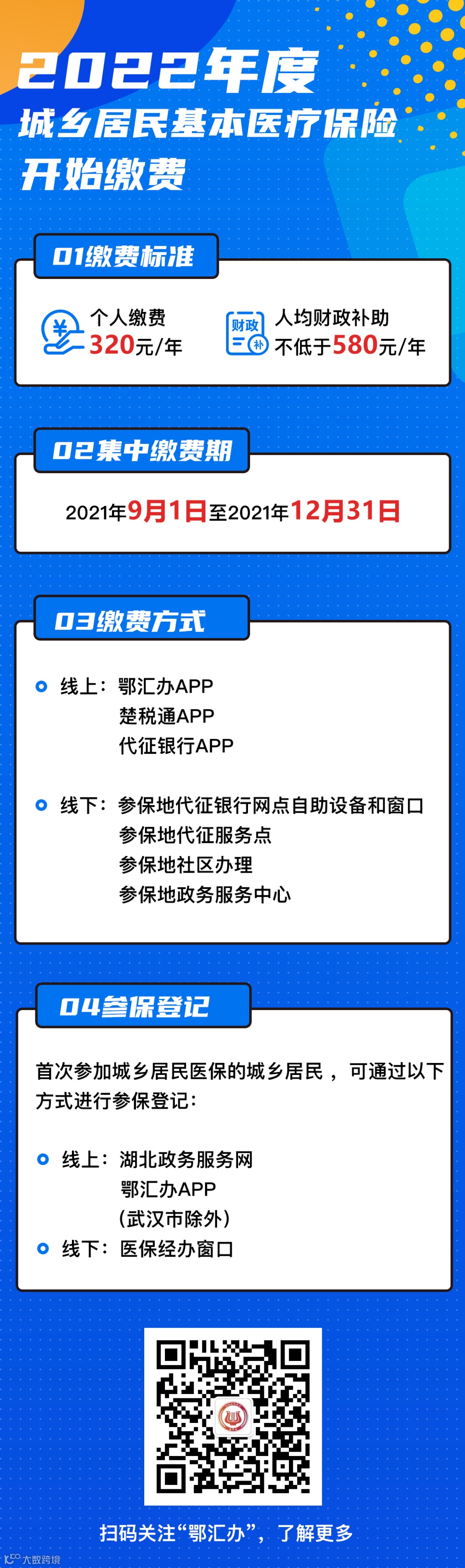参保费用统一由税务部门征收。参保人持居民身份证(或户口簿)原件,代办还需代理人居民身份证原件,到当地政务服务中心、代征银行网点(服务点)办理缴费。如出现缴费问题,可致电税务部门12366进行咨询