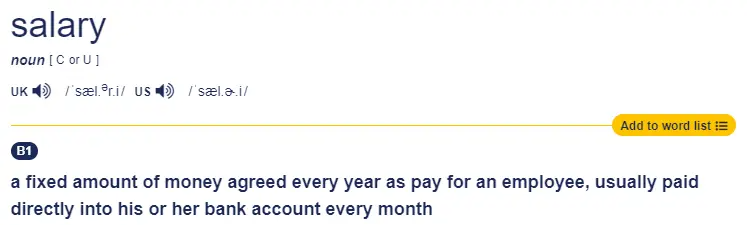 “salary”一般指非体力劳动者所得的“工资”、“薪水”,通常按月、有时按年计算: