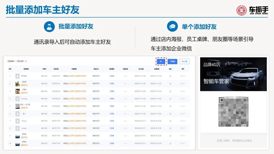 基于现有基盘客户推出的批量添加好友功能可以帮助车商快速和车主建立线上连接