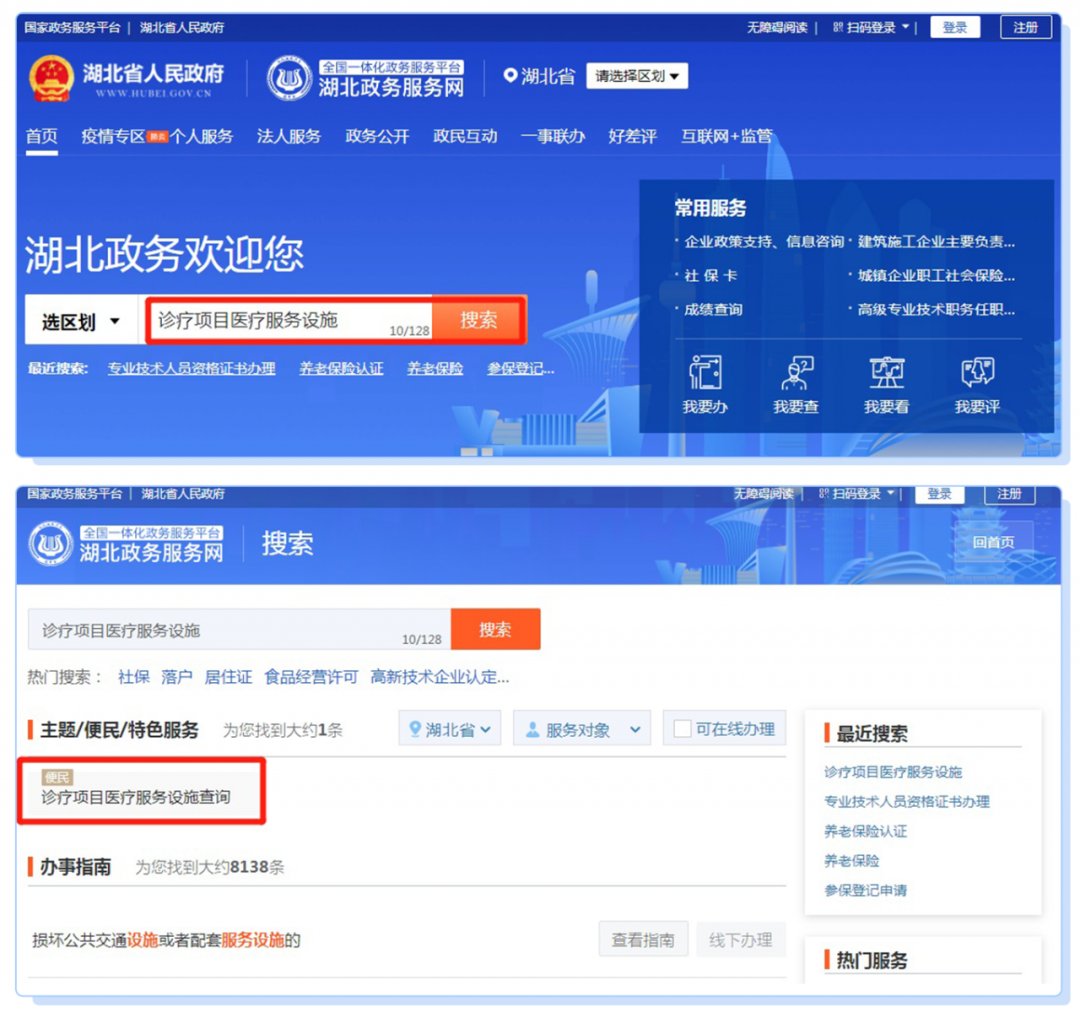 登陆“湖北政务服务网”查询诊疗项目医疗服务设施