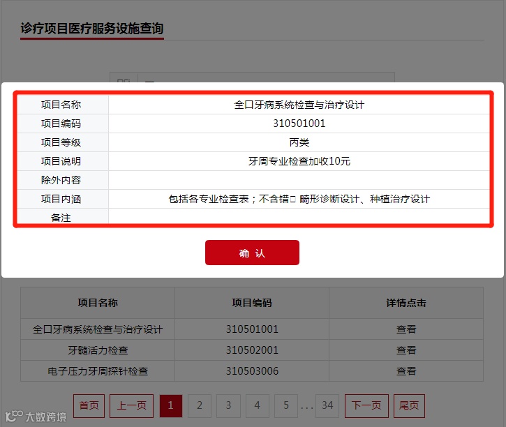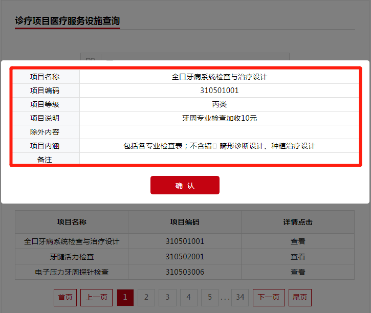 输入项目名称,如“根管治疗”,点击查询,即可查看相关信息: