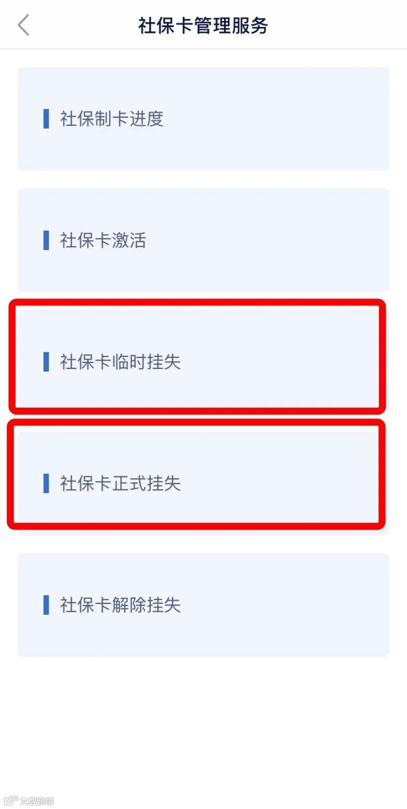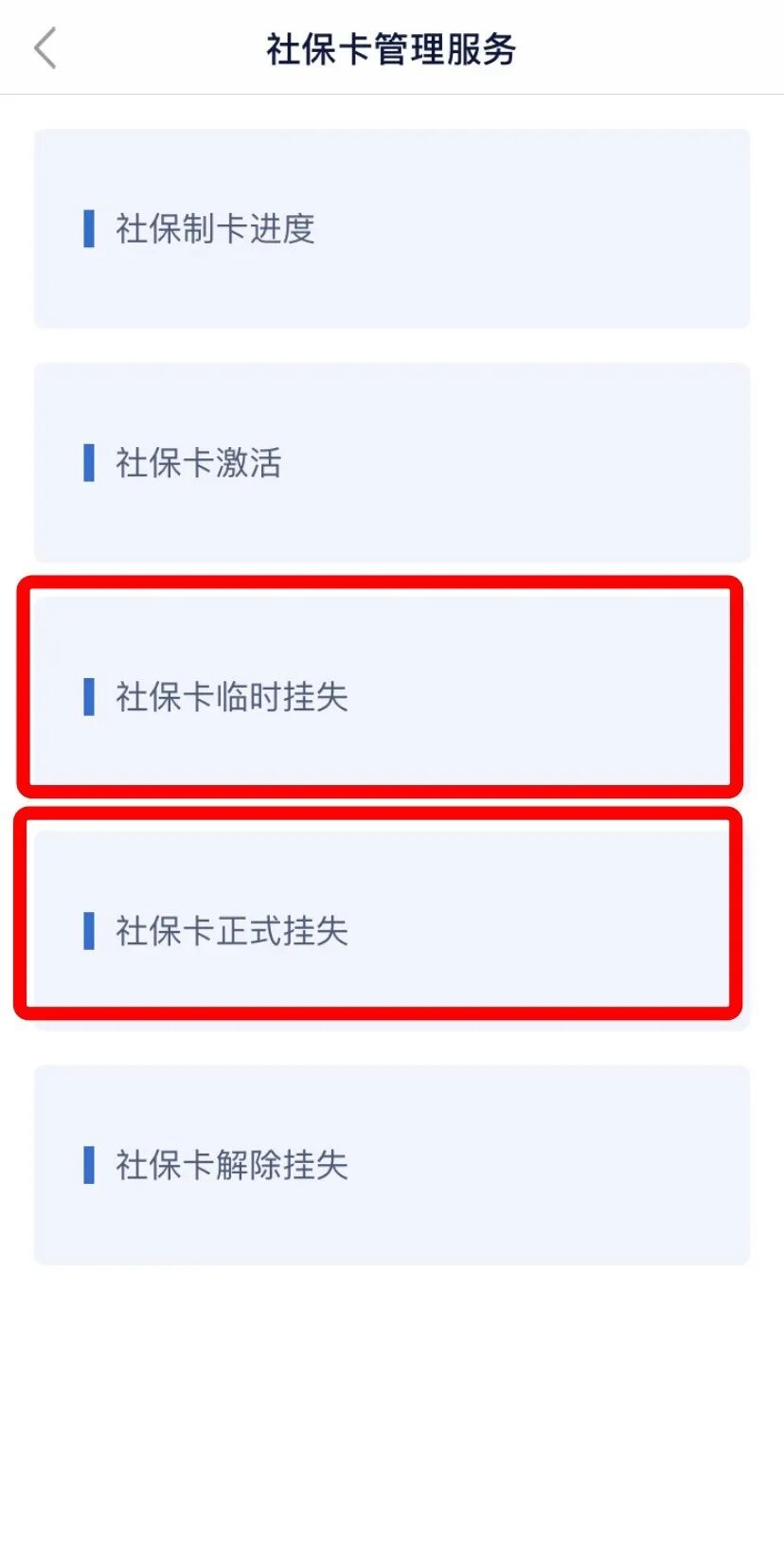 第二步:点击“社保卡管理服务”,点击“社保卡临时挂失”或“社保卡正式挂失”即可。