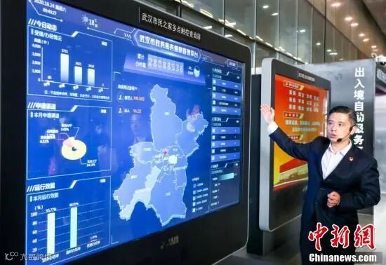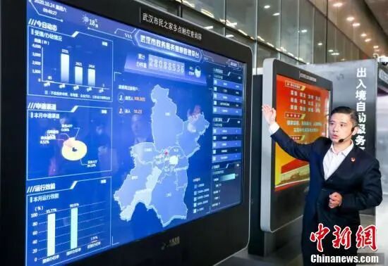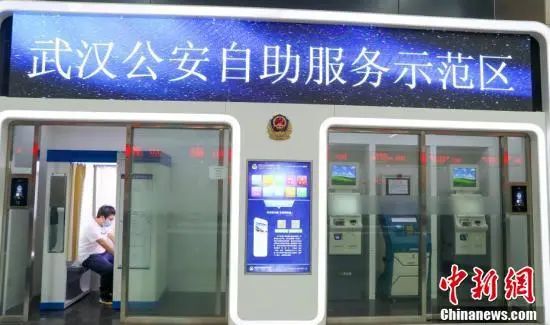 市、区、街道、社区四级在湖北政务服务网上线政务服务事项平均为1511、1330、210、87项。图为市民在无人警局进行个人身份采集。