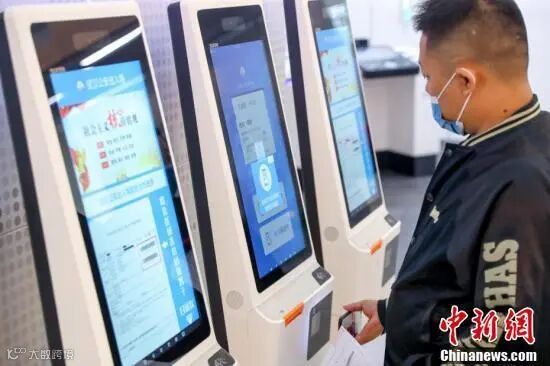 10月24日,在武汉市民之家政务大厅内,市民正在平台办理各类手续。武汉市优化审批流程,按照合法合规事项“马上办”、积极推行“网上办”、现场事项“就近办”、复杂事项“一次办”标准,政务服务基本实现“一网通办”。图为市民正进行自助办税。