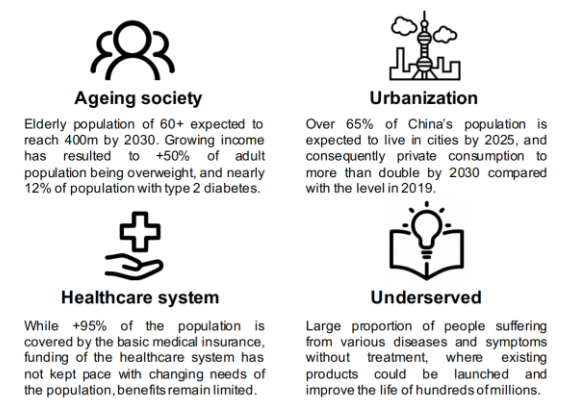 Given the strong niche positions globally, Nordic companies are well positioned to capture China’s next phase of healthcare development, where the sector is expected to grow faster compared to rest of the world, driven by the following growth drivers.