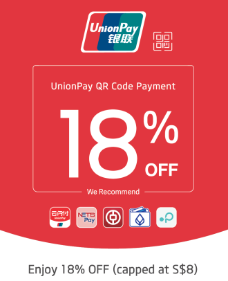 仅适用于银联二维码支付,每卡每日5次 (在所有参与的新加坡活动商户门店范围内)。
