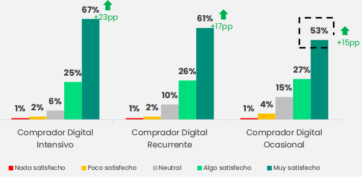 关于网上购物的安全感,7/10的墨西哥消费者认为在线购买产品和服务是安全的。对于网上购物的满意度,2022年墨西哥线上消费者的满意度有所提高。