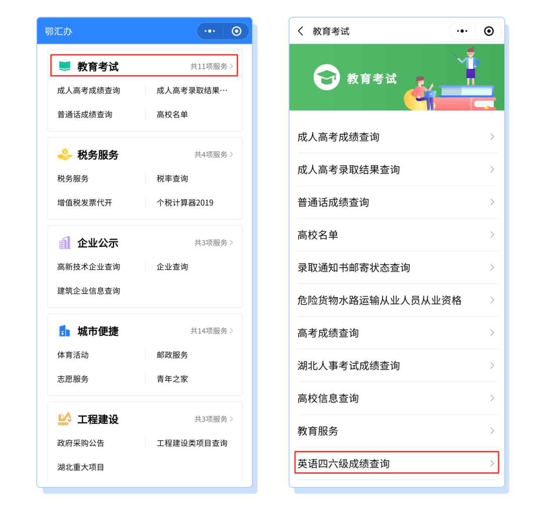 鄂汇办APP、鄂汇办微信小程序的“教育考试”