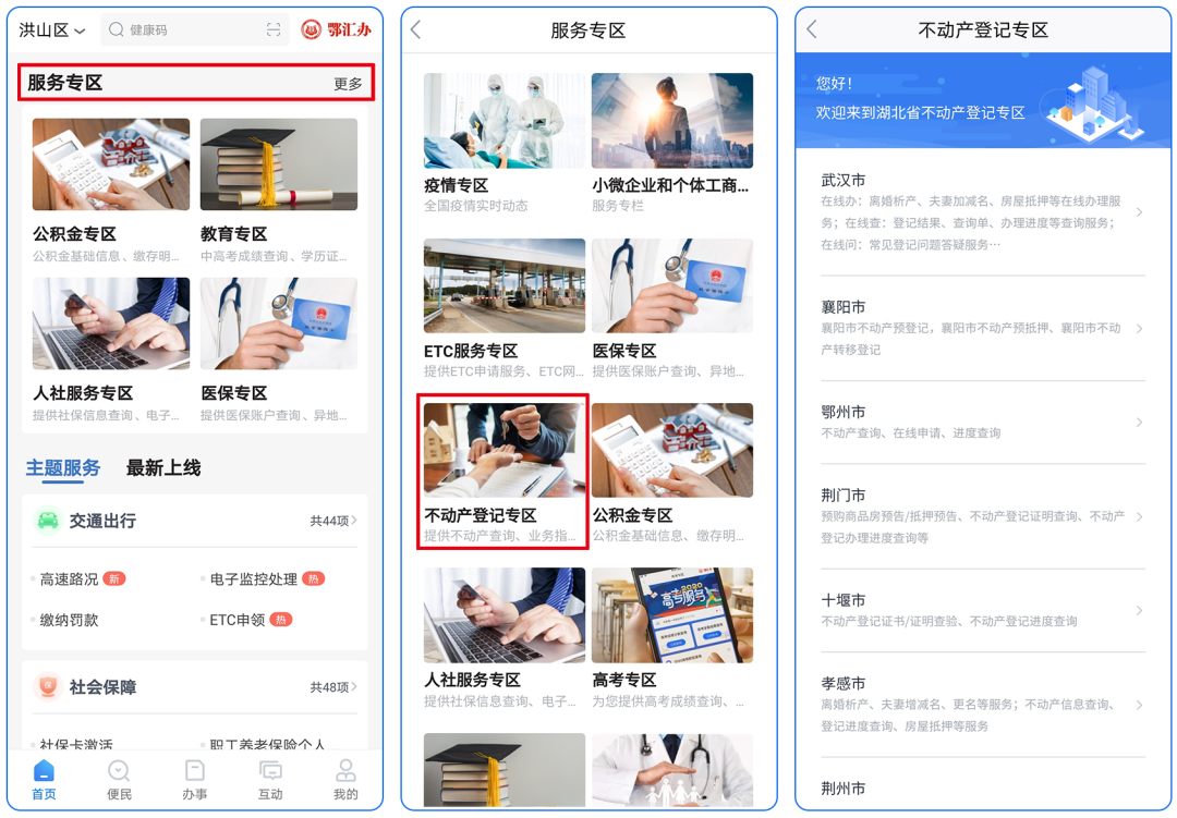 除了襄阳市,鄂汇办不动产登记专区