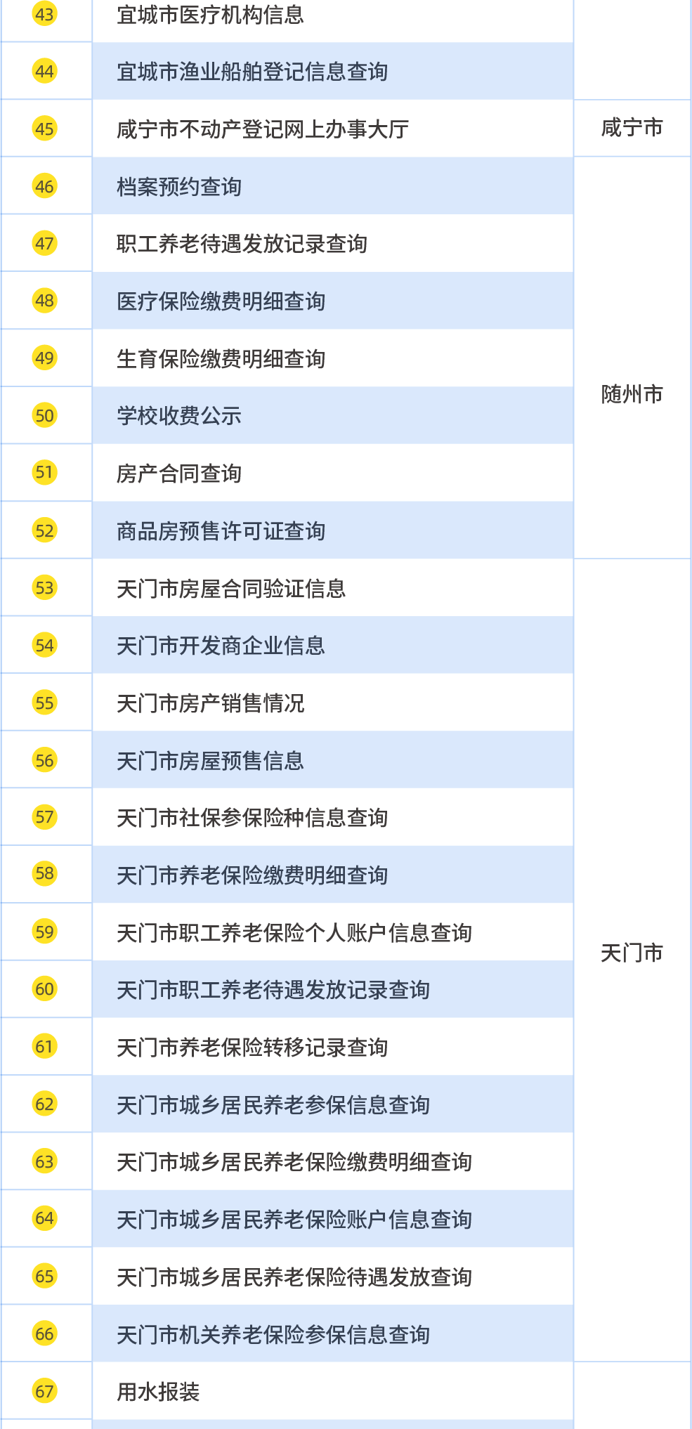 11月,天门市月度上新服务中,社保系列服务还包含了城乡居民养老保险缴费明细查询、账户信息查询、参保信息查询;职工养老保险个人账户信息查询、待遇发放记录查询等服务;你想查询的社保相关明细,这里都有哦。