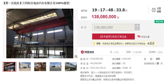 值得一提的是,本次拍卖的全部股权包括土地、生产线、厂房等固定资产以及知豆的纯电动乘用车生产资质,这也是许多造车新势力为让产品落地苦苦寻觅的「通行证」。即使起拍价仅为 1.38 亿元,但截至 10 月 31 日,仍 0 人报名。