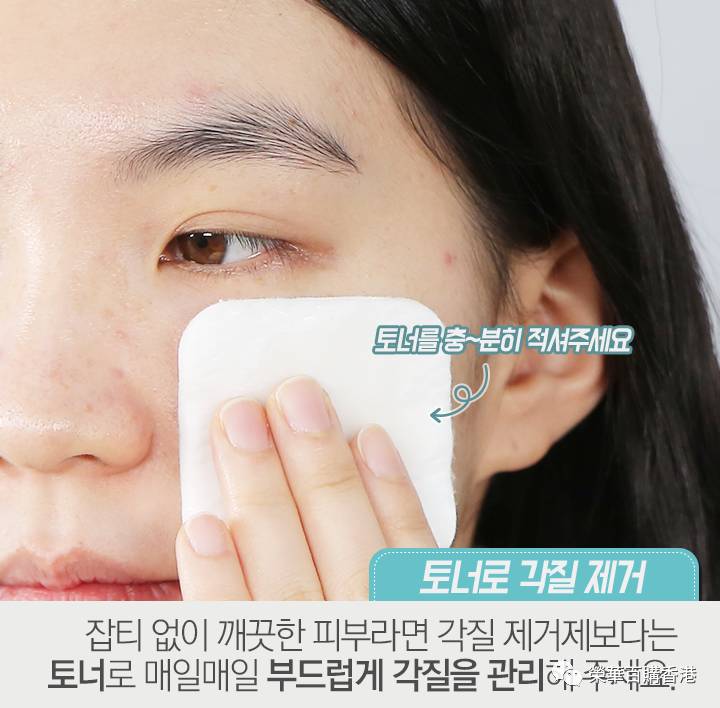 比起较刺激性的去角质产品,更适合每天将保湿水沾湿化妆棉温和地擦拭全脸