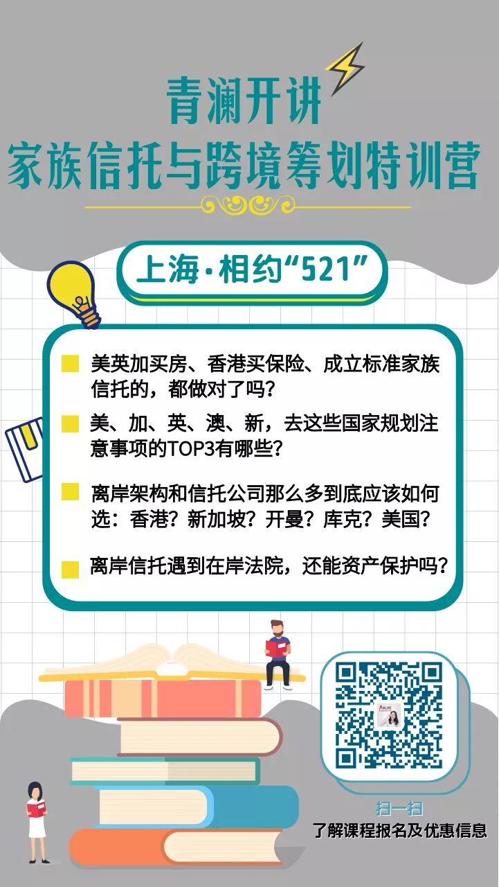 硬广分割线:家族信托与跨境筹划特训营与您相约上海521!猛戳阅读原文了解报名详情哦!