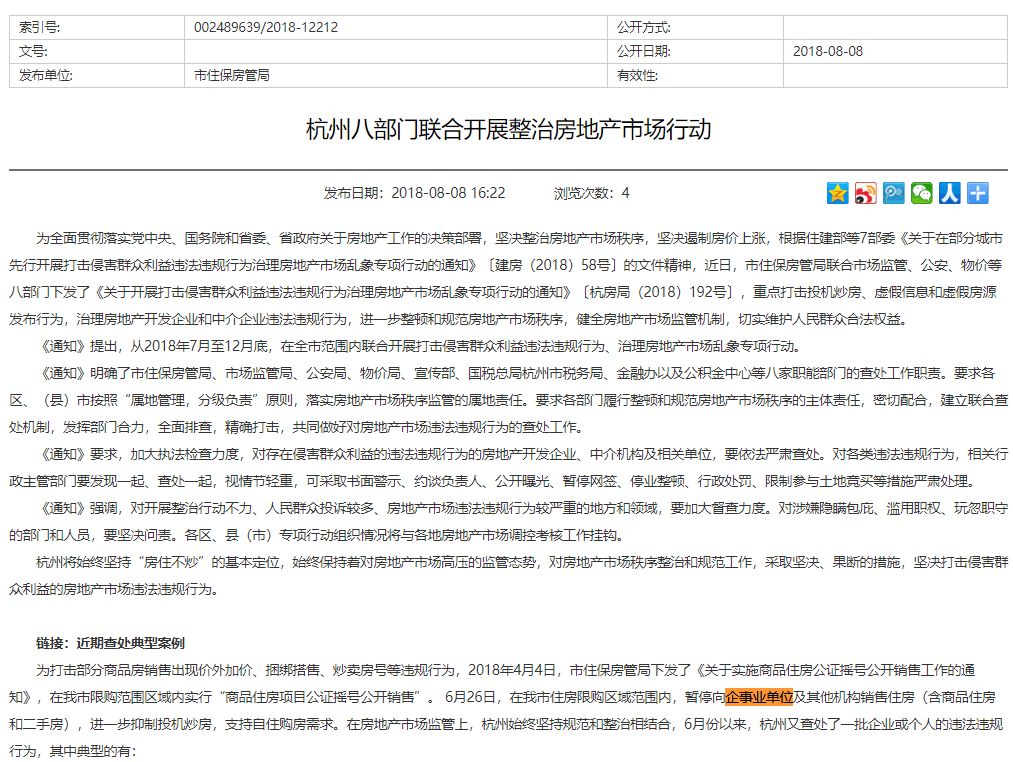 截止到目前为止,杭州、深圳、西安、长沙已经有明确的政策依据禁止企事业单位购买商品住房;上海通过出台《关于规范企业购买商品住房的暂行规定》沪建房管联[2018]381号通知提高了企业购买商品住房的资格门槛;我们暂未查询到北京明确的政策依据,但根据窗口咨询可知除了个人独资企业、合伙企业之外,其他类型企业是可以在北京网签购房并不受到限购政策限制。所以简单总结一下,整体上说企业依然可以购买住宅,但能在哪里买、不能在哪里买就需要企业在有意向购买时查阅当地现行有效的楼市政策方能确认。