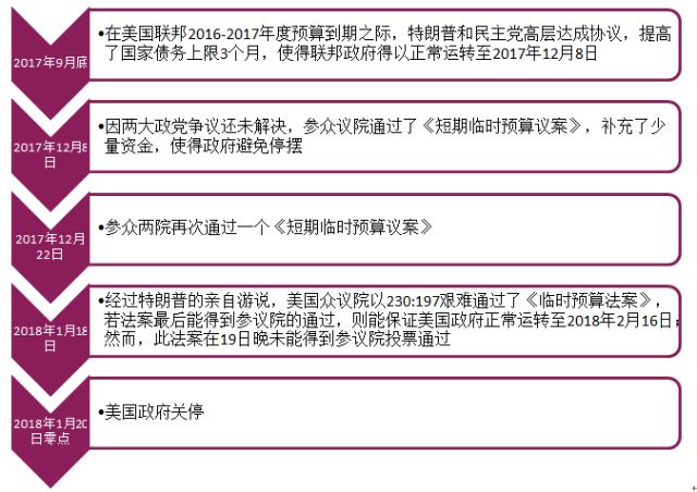 2018年1月20日,是特朗普上任一周年之际。正是在这一天,美国政府送给他的“周年贺礼”竟然是政府关停,这是美国政府自1976年来第19次关门。3天后,美国政府于22日晚间宣布重开。过去三天我们见证了这仿佛戏剧般的形势变换在美国这一大国上演,不禁更加好奇其中更加隐秘的风云变幻。