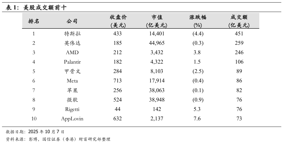 ◆ 加密货币概念股下跌,Strategy跌超8%,Coinbase跌超2%。比特币挖矿概念股普涨,因比特币价格近期创下新高推高了挖矿代币的价值,且挖矿商正向人工智能数据中心领域多元化发展,CleanSpark涨超3%,Iren涨超6%,Hive Digital涨超11%。