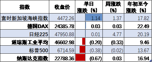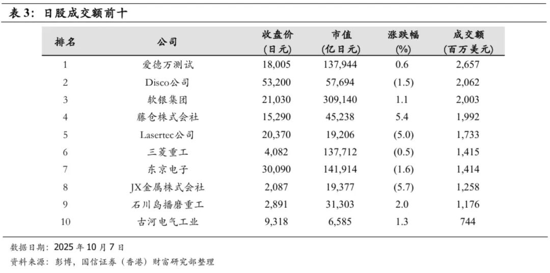◆ 截至收盘,主要指数延续此前升势并再创历史新高,日经225指数涨0.01%,东证指数涨0.06%。整体市场情绪较为乐观,投资者对高市早苗出任日本首相后的政策方向抱有期待,同时日元持续贬值亦为出口导向型企业带来利好预期。