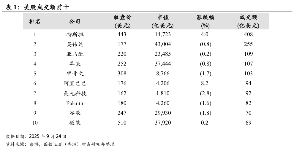 ◆ 热门科技股涨跌不一,谷歌跌超1%,英伟达、苹果跌近1%,英特尔涨超6%,消息称英特尔正寻求苹果对其进行投资。特斯拉涨近4%,特斯拉将于10月初公布第三季度的汽车交付数据,瑞银将其交付量预期从43.1万辆上调近10%至47.5万辆,较上一季度交付量增长24%。
