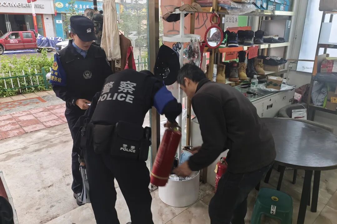 检查中,民辅警深入辖区沿街铺面,重点对电气线路是否老化、消防设施是否完备、疏散通道是否畅通等进行了详细检查,针对店铺内插线板乱接、货物堆放不规范等问题,逐一指出并指导整改,确保每一处隐患都能及时消除。同时,提醒各商铺经营者要提高安全防范意识,诚信、合法经营,时刻将安全放在第一位,做好日常安全隐患检查。