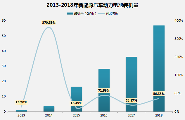 有这样一组数据可以佐证。据动力电池应用分会研究部统计数据显示,2014-2018年间,国内动力电池装机量整体处于上升趋势,但在2015年出现爆发式增长后,增长率出现下滑。