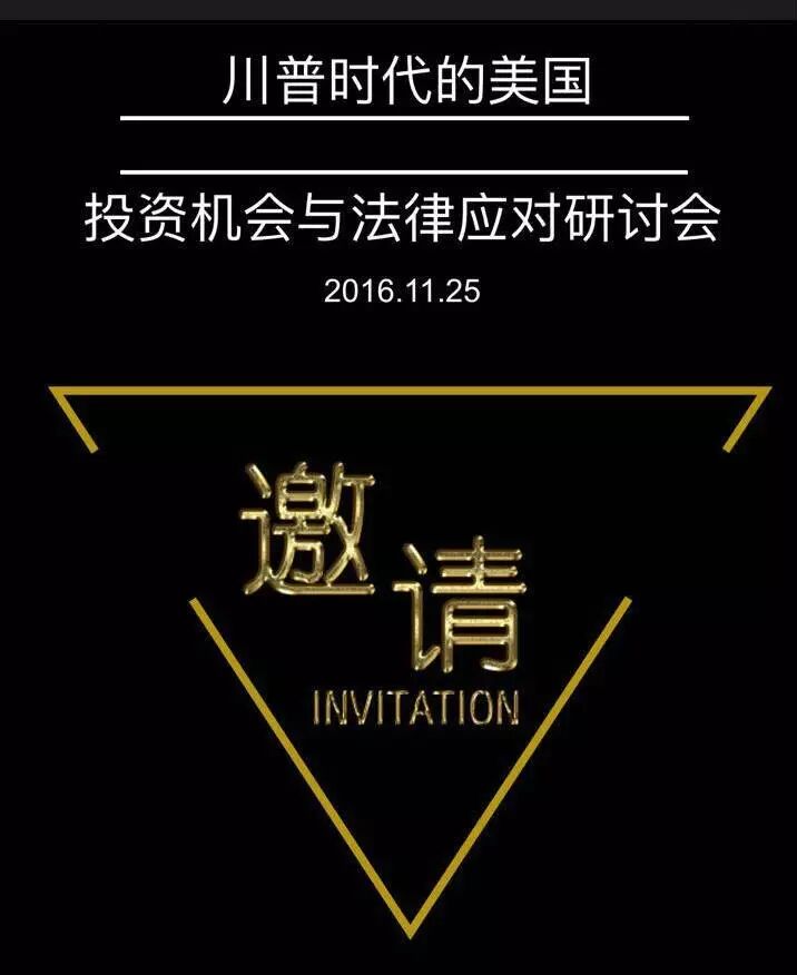 敬邀您参加11月25日“川普时代的美国--投资机会与法律应对”研讨会。