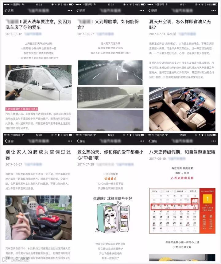 在九月份用“暑期放价”、“换季保养”、“自驾出行前的车检”等主题在微信公众号反复推广为营销活动预热;
