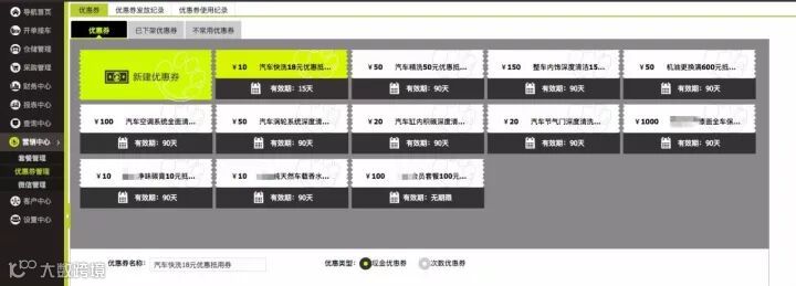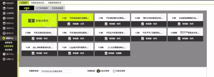 该门店结合自身业务,在翰都系统中设置各类优惠券,涵盖了门店各类高利润的项目;