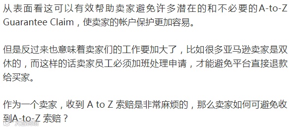 更新的A-to-Z担保索赔政策,内容如下: