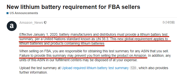 有在亚马逊上售卖以上产品的卖家一定要注意了,一定要在发货到FBA前仔细检查,否则一旦发到FBA之后被发现没有锂电池的测试摘要,不仅会被禁售,而且还要继续仓储费,得不偿失!