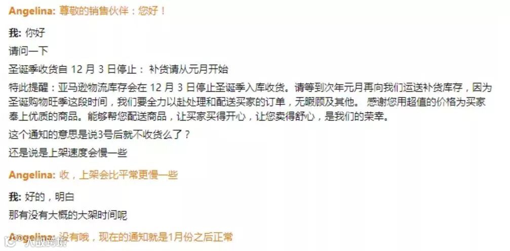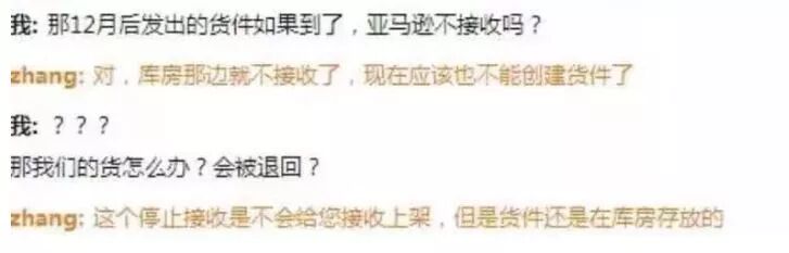 而关于卖家们关心的问题:已经在路上的货会不会受到影响?有卖家开了case咨询,客服表示,12月3日没有到的货,会接收,但不会马上上架,要1月份之后才恢复,并且保证不了丢件。